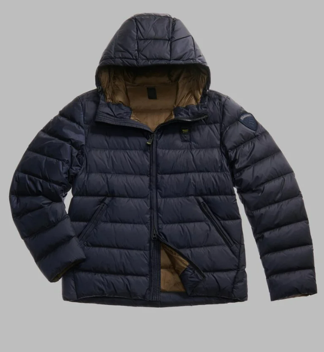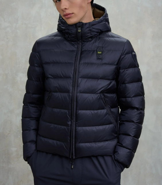 Quilted down jacket with horizontal stripes. An iconic Blauer piece with natural down padding, warm and lightweight.