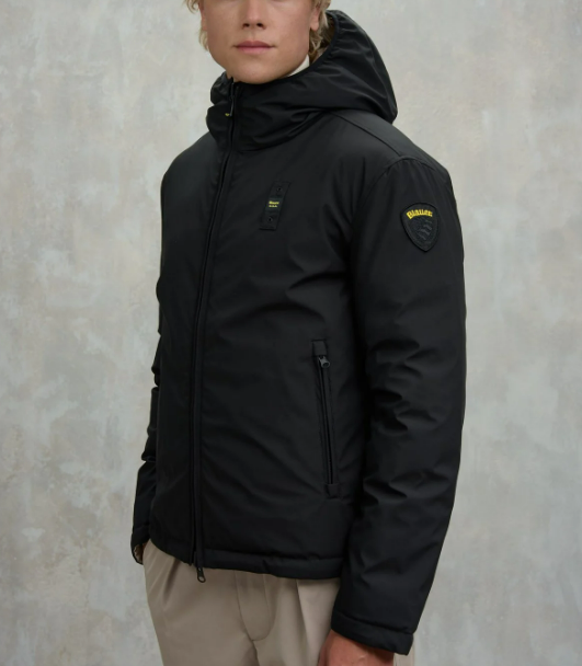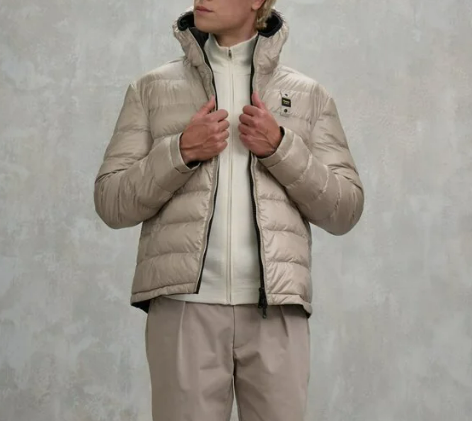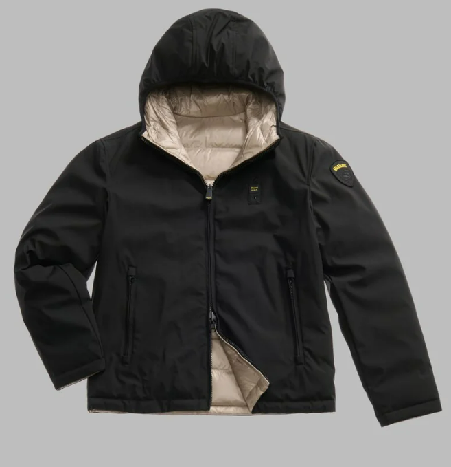 A reversible water-repellent down jacket, smooth on one side and quilted with horizontal stripes on the other. A versatile piece that can be worn in two versions: one more elegant and one more casual.