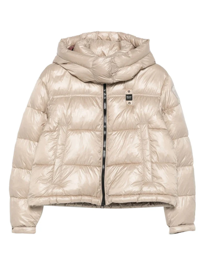 Winter jacket in water-repellent micro rip nylon with removable high collar. Sustainable padding with horizontal striped stitching with contrasting color interior to match the jacket with elegance and warmth.
