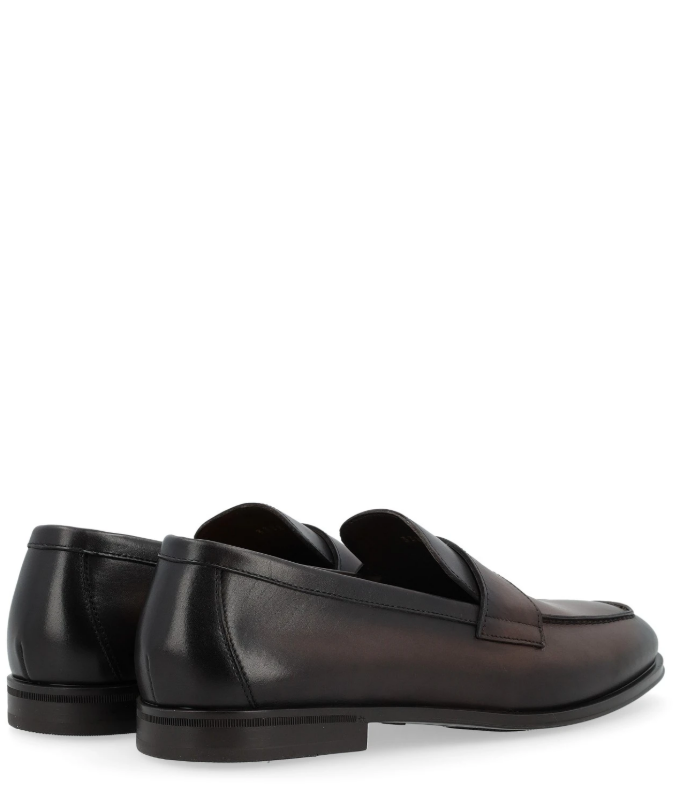 Loafer crafted from dark brown leather. Featuring a rubber sole and a cemented construction, in which the sole is bonded using eco-friendly adhesives. Made in Italy. Features a branded insole