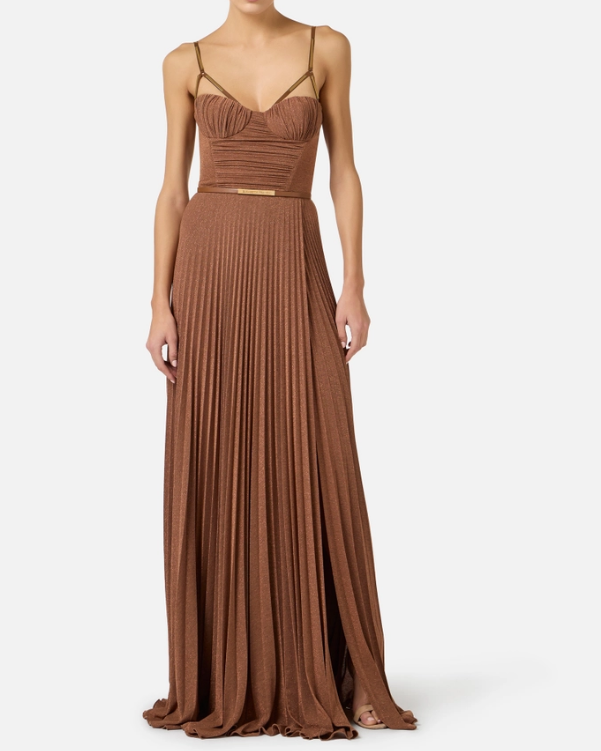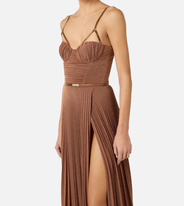 • LAME' JERSEY DRESS ELISABETTA FRANCHI | ABR1661E2600 cuoio