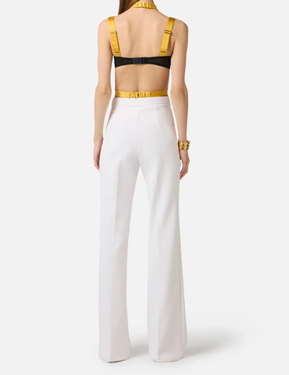 • TROUSERS WITH EMBROIDERED LOGO ELISABETTA FRANCHI | PA17161E2360 avorio