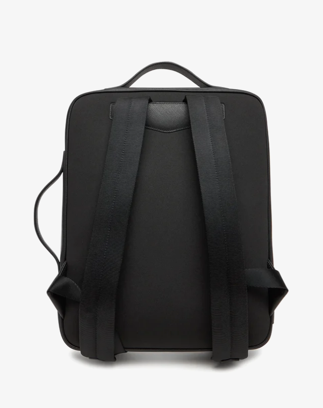 The backpack features a top and side handle design. Model with shoulder straps on the back, zipped compartment and logoed lining.