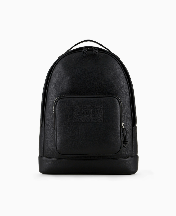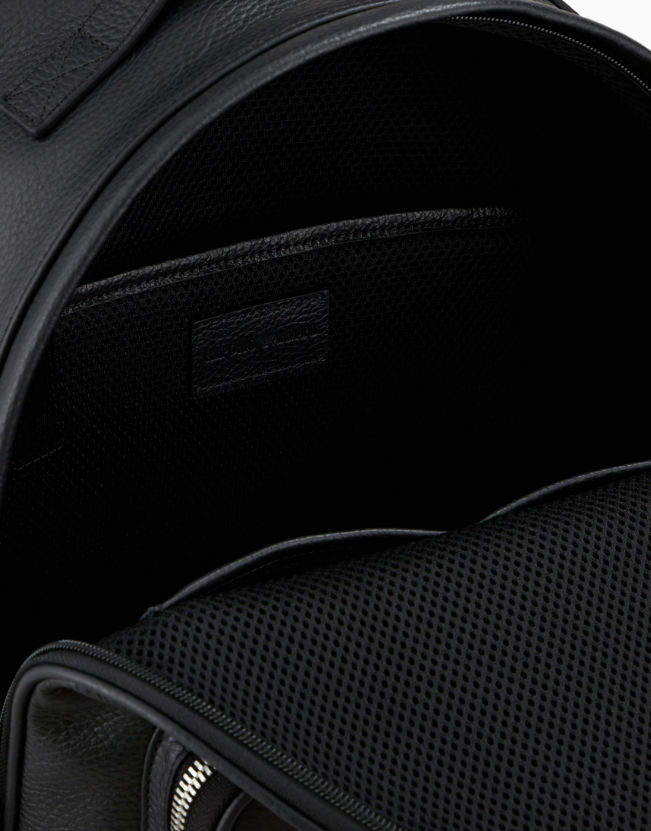 Round-shaped backpack with zip and external pocket. A particularly soft leather, characterized by the tumbled finish that gives life to versatile accessories.