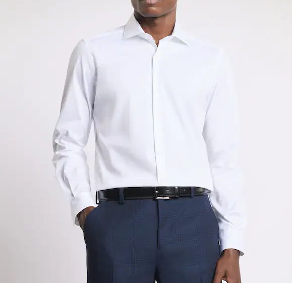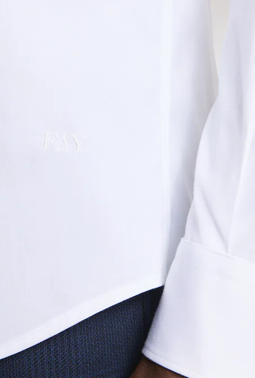 Regular-fit shirt made of stretch cotton poplin, with a spread collar and back pleats. Featuring a button placket without a placket, it features the Fay logo embroidered at the bottom.