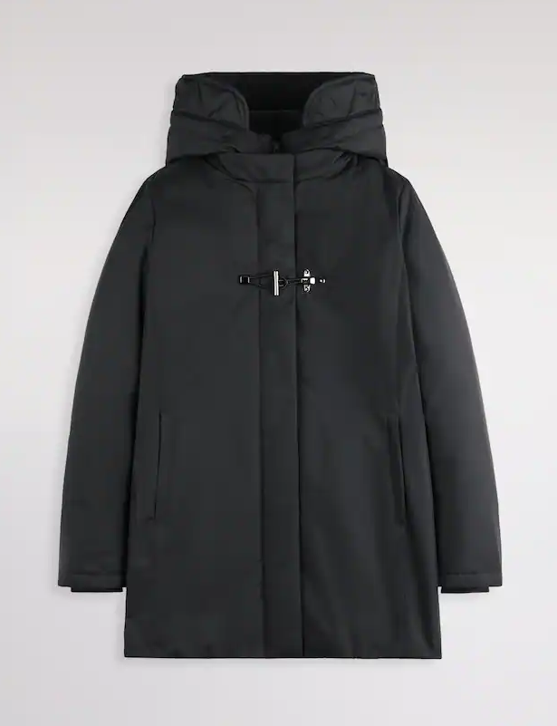 Crafted from water-repellent technical gabardine, it features a removable bib and a hood padded with technical wadding. Featuring two zipped welt pockets and windproof cuffs, it features a zip fastening, hidden snaps, and a Fay toggle. An internal label with the garment's name completes the look.