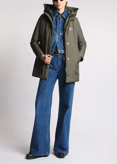 Crafted from water-repellent technical gabardine, it features a removable bib and a hood padded with technical wadding. Featuring two zipped welt pockets and windproof cuffs, it features a zip fastening, hidden snaps, and a Fay toggle. An internal label with the garment's name completes the look.