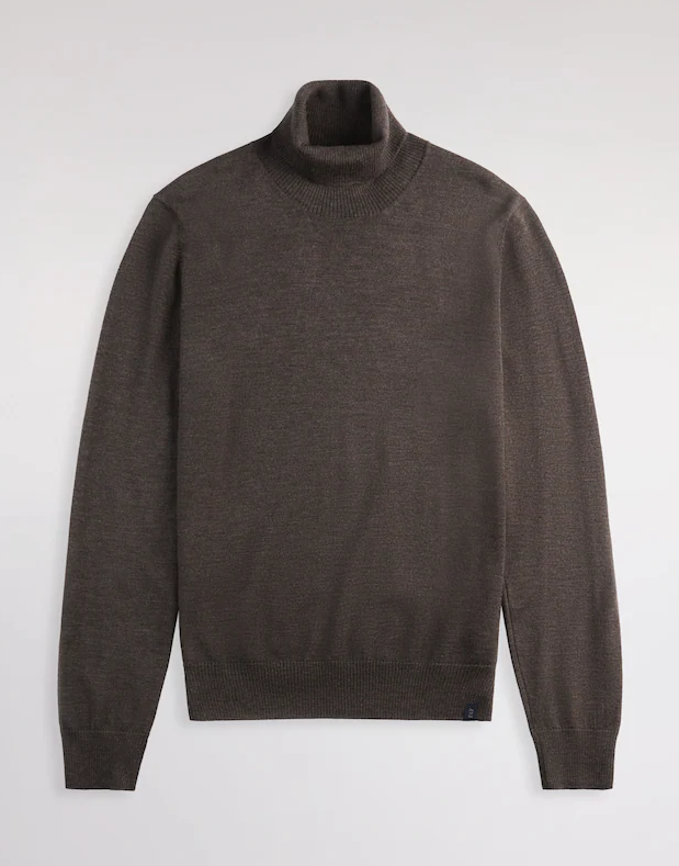 Turtleneck sweater made of smooth wool knit. An essential with a simple and refined style, enhanced by the Fay logo label on the hem