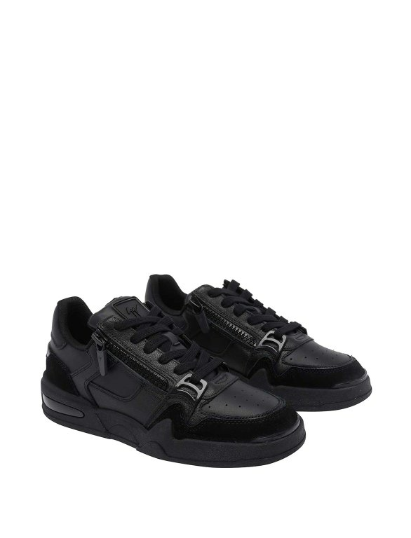 Round toe sneakers, lace-up closure, zip closure, leather upper, rubber sole