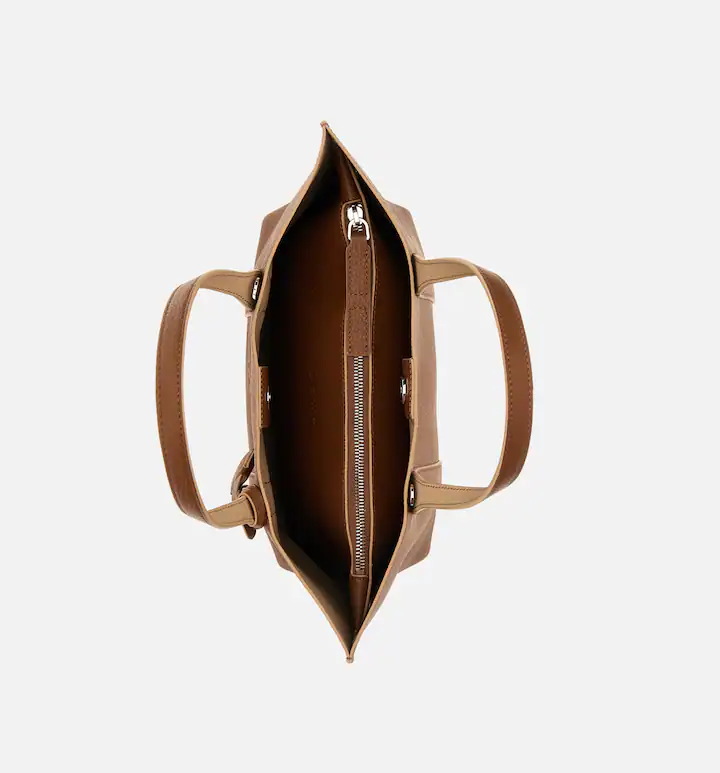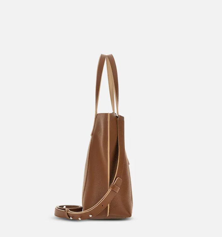 The small Script shopping bag features front bands forming a large H. Featuring two fixed handles and an adjustable, removable shoulder strap, this hammered leather bag features a metal H-Fob charm and keychain pendant. The interior compartment, closed with a magnetic button, features a large central zip pocket.
