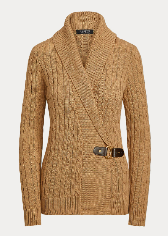 This classic cotton sweater features a faux leather buckle closure, engraved with the exclusive Ralph Lauren monogram.