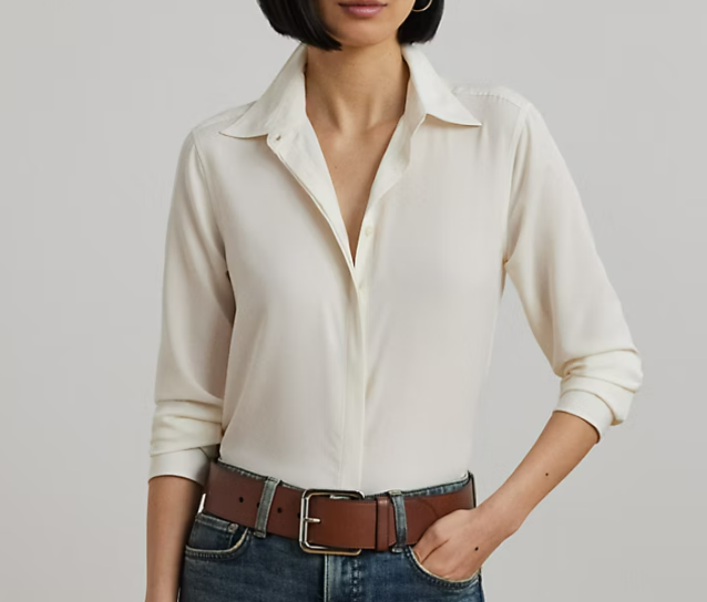 A versatile and refined must-have, this shirt is crafted from lightweight crepe for a fluid drape. Exclusive engraved buttons complete the look.