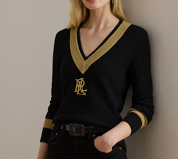 Featuring metallic stripes along the collar, cuffs and hem, this version of Lauren Ralph Lauren's iconic cricket jersey is crafted from a soft combed cotton blend and features our signature embroidered logo on the chest.