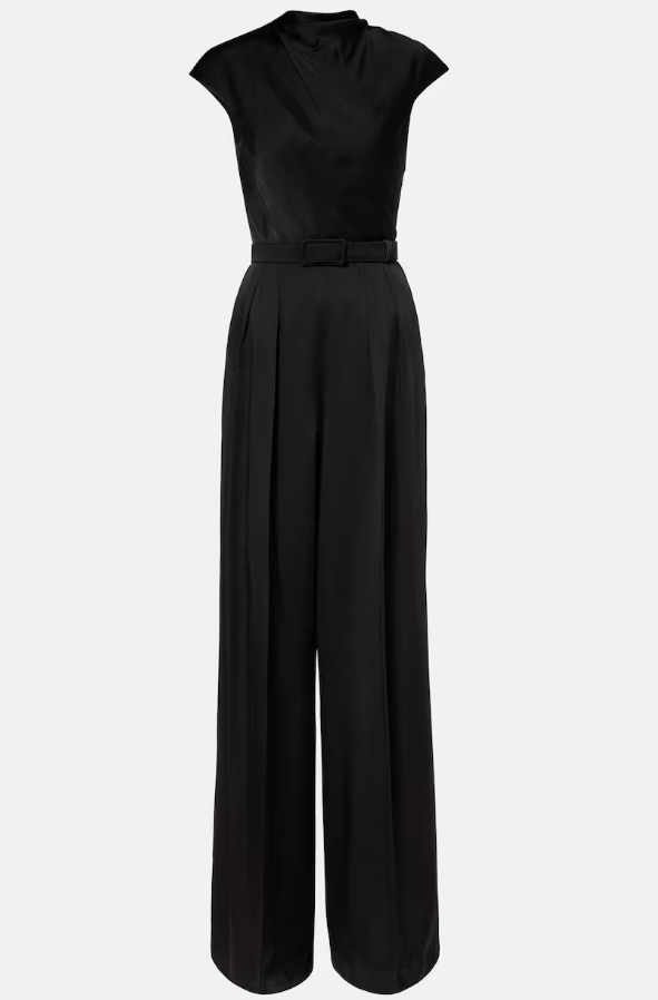 Sleeveless jumpsuit with wide trousers and draped bodice with oblique cut-out detail on the front