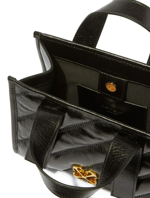 Featuring a lined and quilted design, this 100% leather tote bag features an Arrow motif plaque and gold-tone hardware on the handles. Made in Italy