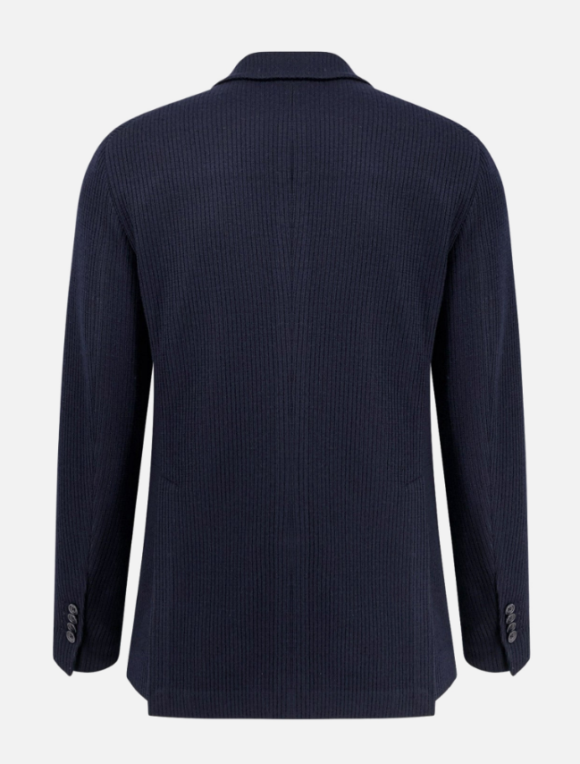 Button closure on the front and two vents on the back. Classic peak lapels with a removable pin. Two patch pockets and a chest pocket.