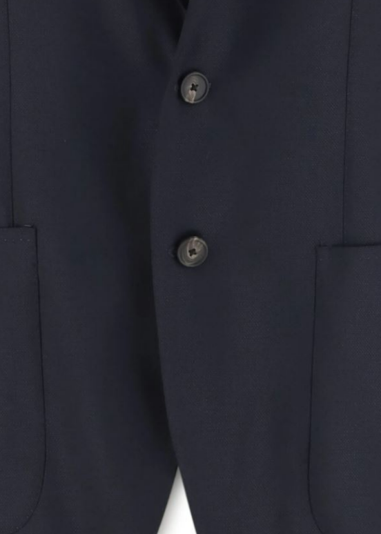 Super 110's stretch wool jacket. Hopsack weave. Notch lapels. Patch pockets. Chest pocket. Inside pockets. 2-button closure. 4-button cuffs. Double back vents. Unlined.