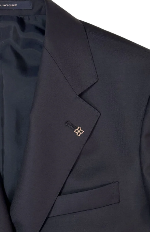 The Tagliatore single-breasted suit is crafted from pure virgin wool. It ensures comfort, breathability, and an impeccable fit. The single-breasted two-button jacket features a notched lapel and a removable pin. The matching trousers complete the ensemble with clean lines and meticulous detailing.