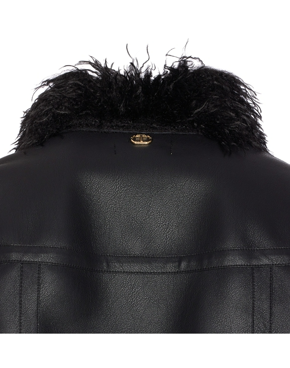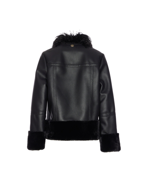 • LEATHER AND FAUX FUR EFFECT JACKET TWIN SET | 252TP241000006 NERO