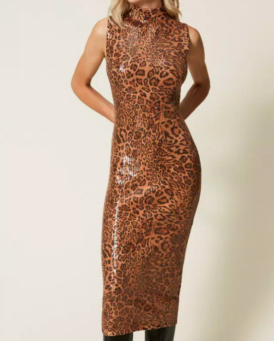 • LONGUETTE DRESS ANIMALIER TWIN SET | 252TP361012737 ST.ANIM.COFFEE