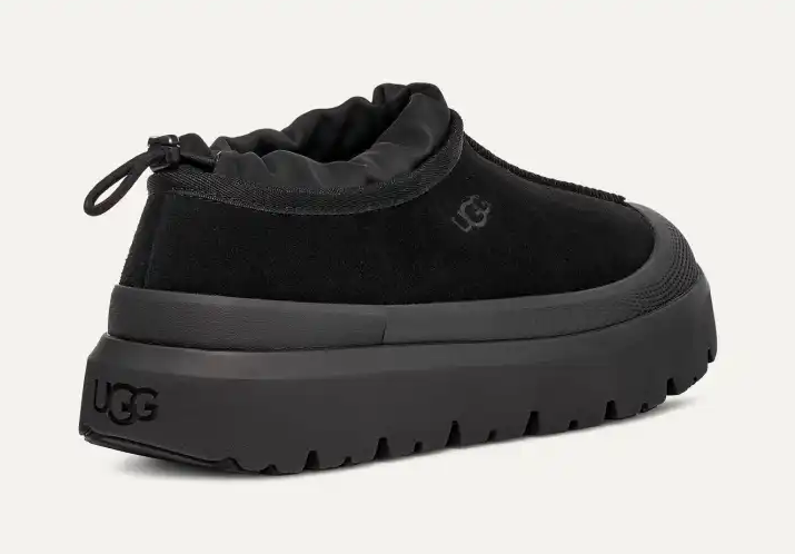 Crafted from waterproof, seam-sealed suede and featuring a cozy UGGplush™ regenerated wool lining, the Tasman Weather Hybrid offers a lightweight slip-on fit with a comfortable slip-on silhouette. The outsole, made from renewable, rain-grown sugarcane, features a fixed wet weather galosh.