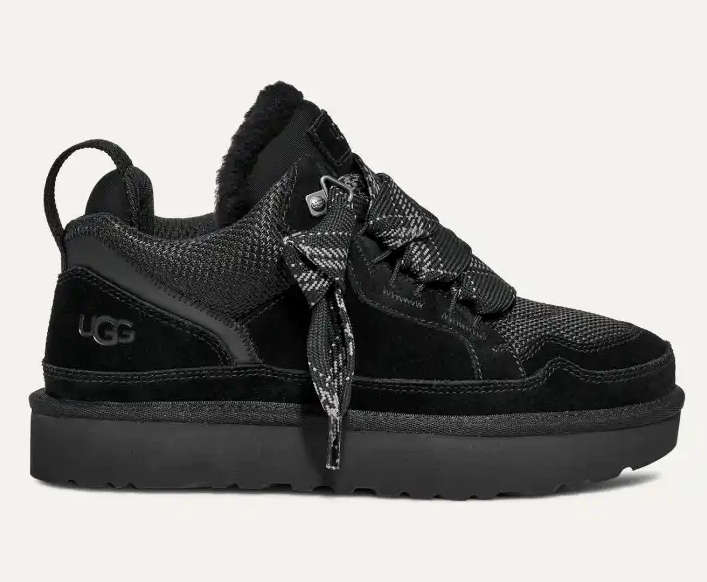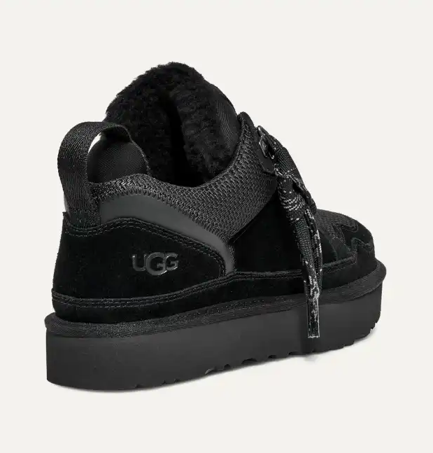Recycled woven canvas and suede upper, durable fabric heel strap, UGG® logo patch, padded collar, oversized padded tongue