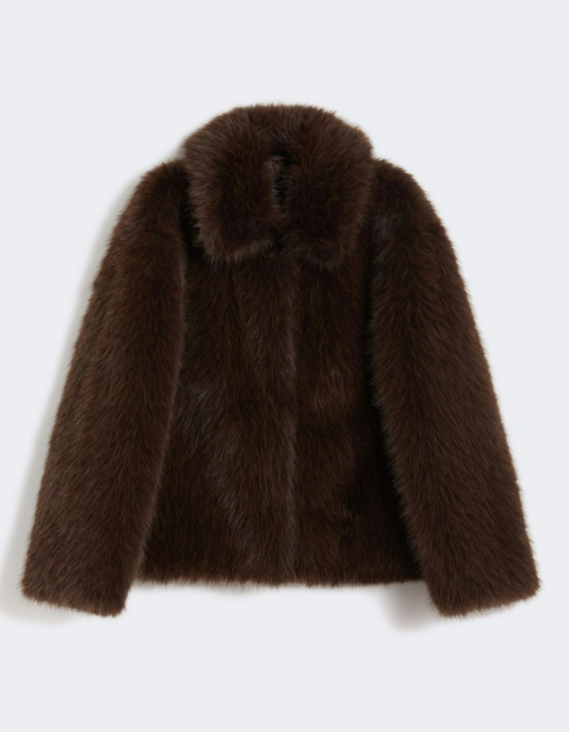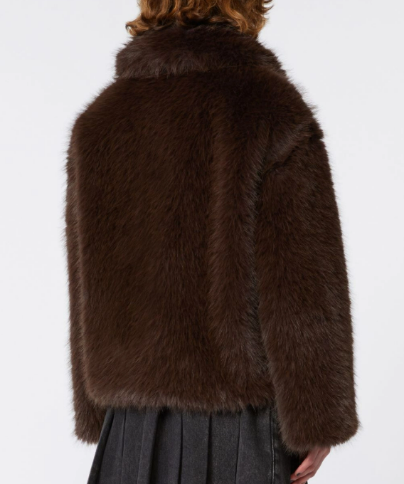 Single-breasted crop jacket with a distinctive boxy silhouette.