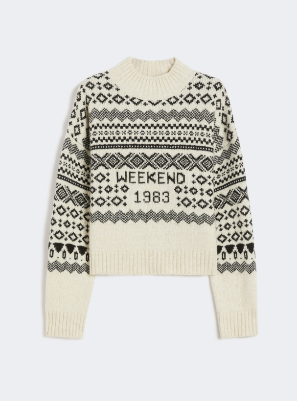 Oversized sweater, embellished with a Nordic-inspired jacquard workmanship.