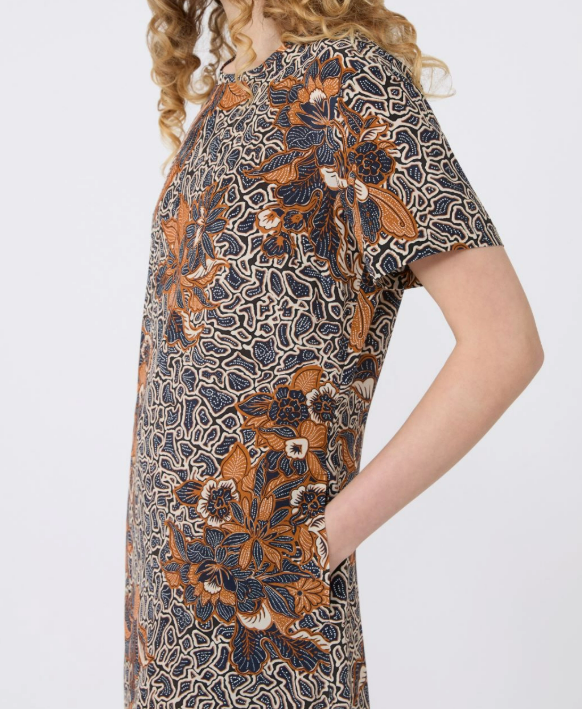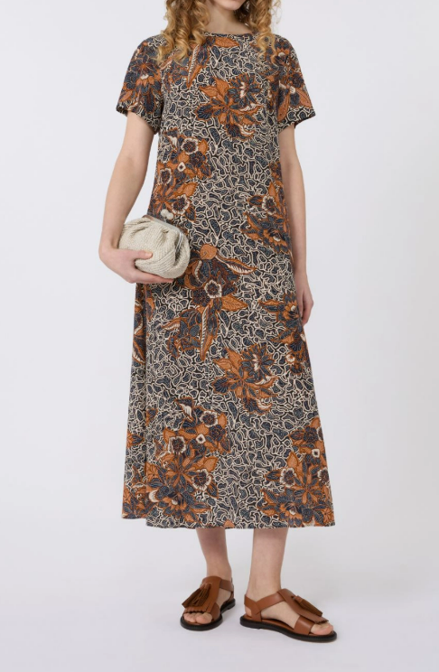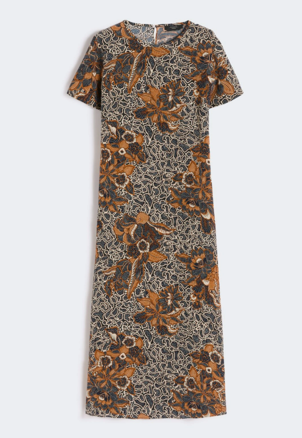 Long dress with a flowing silhouette and slightly flared line at the bottom