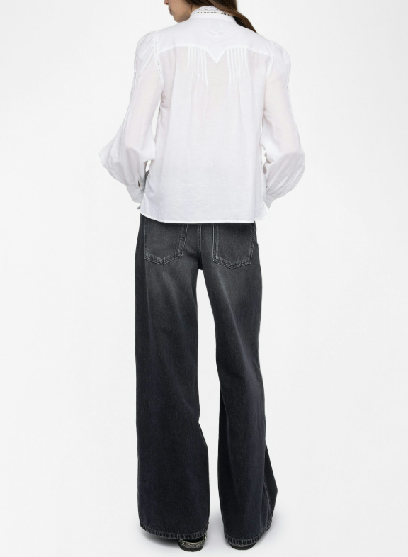 Cotton shirt with long sleeves and wings embroidery at back.