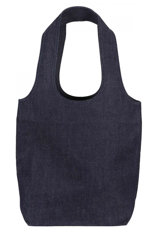 Borsa a mano senza chiusura. Realizzata in in denim