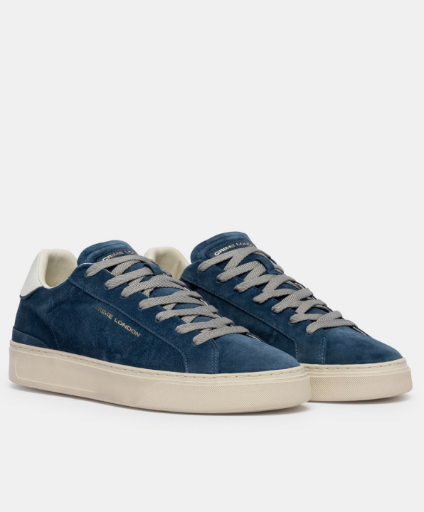 Sneaker realizzata con materiali di alta qualità. Tomaia in suede blu denim, dettagli in suede blu denim. Talloncino in pelle bianca. Linguetta in suede blu denim con label logata in pelle. Lacci grigi in poliestere.