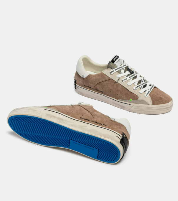 Sneaker realizzata con materiali di alta qualità, tomaia in nabuck taupe, dettagli in suede grigio. Talloncino in pelle bianca. Linguetta in tessuto camouflage con label logata in tessuto. Patch in pelle nera sul retro.