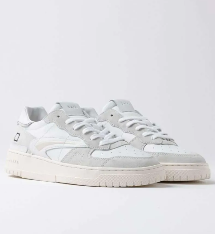 Sneakers bassa in pelle colore bianco e suede colore grigio chiaro