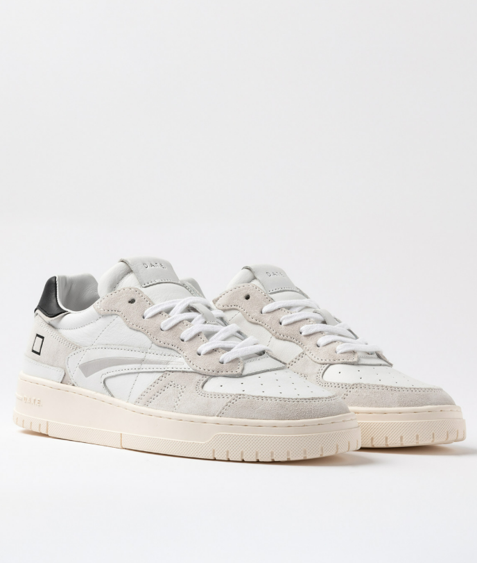 Sneakers bassa in pelle colore bianco e suede in tono.