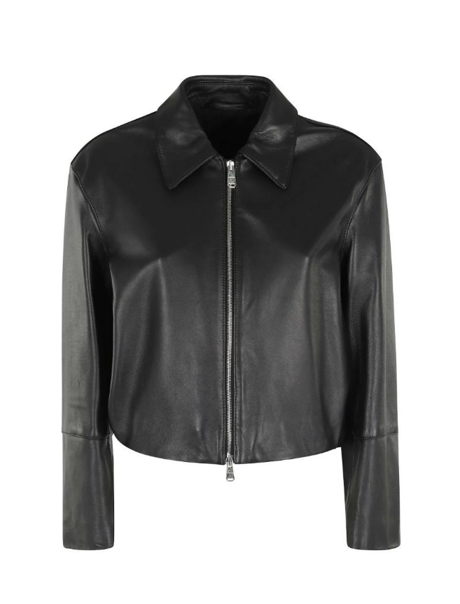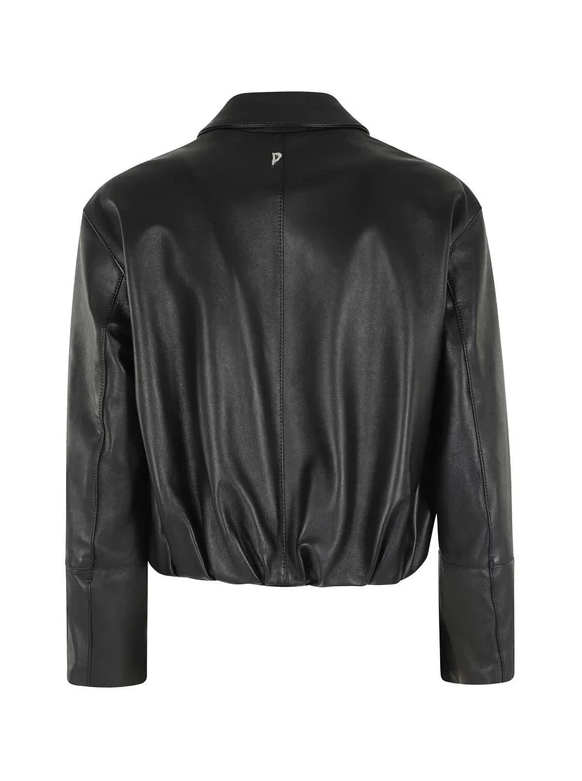 Giacca Dondup modello chiodo realizzata in pelle, caratterizzata da colletto a punta, chiusura frontale con zip e maniche lunghe.