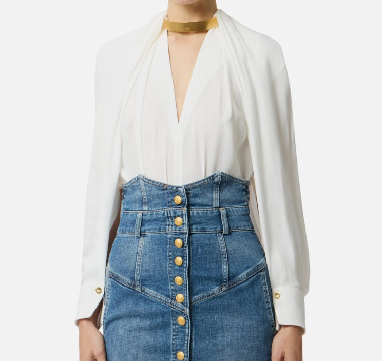 • GEORGETTE BLOUSE WITH JEWEL DETAIL ELISABETTA FRANCHI | CA12961E2360 avorio