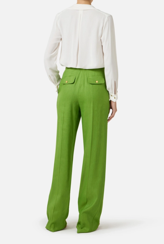 Camicia in georgette. Si distingue per il doppio colletto, arricchito dall'aggiunta di nappine gioiello per un gioco di luce e movimento. Le maniche sono impreziosite da bottoni in metallo dorato ispirati ai classici gemelli. Vestibilità regular