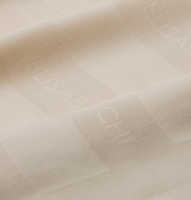 Foulard quadrato in viscosa e modal tinto in capo. Si distingue per il pattern a righe con logo che dona movimento all'accessorio. Cornice in tinta unita con bordi sfrangiati.