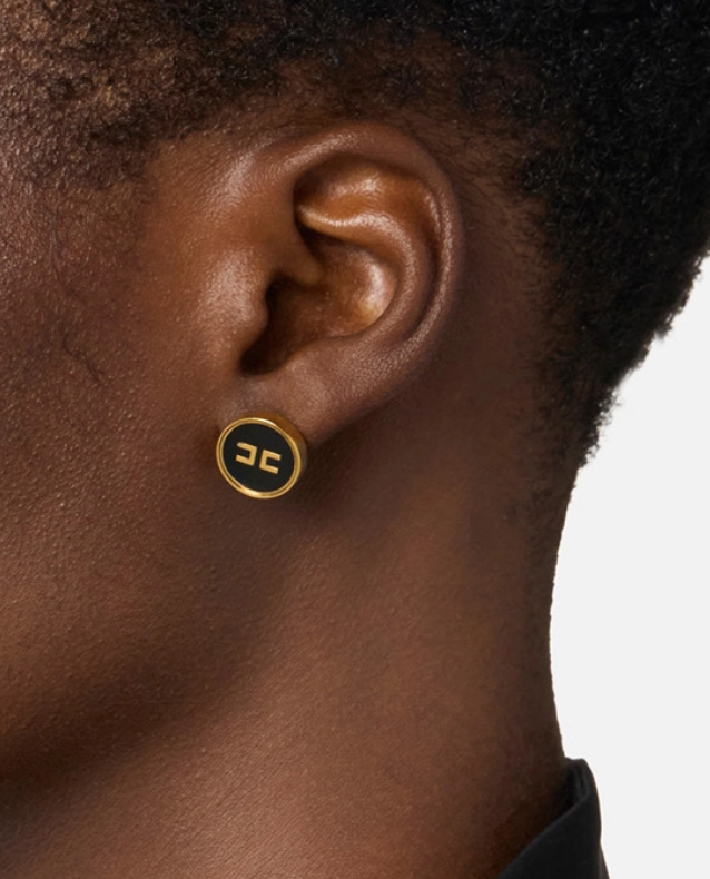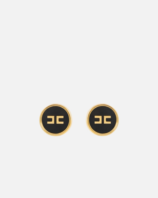 Orecchini realizzati in metallo con finitura dorata. Con design a bottone, sono caratterizzati dal dettaglio con logo. Chiusura a perno con sfera