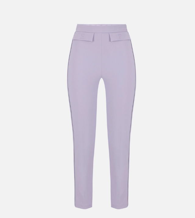 Pantaloni in doppio crêpe stretch. Hanno cuciture riportate esternamente, rifinite con tessuto a taglio vivo e impunture. Sul davanti, le patte sono impreziosite dal logo ricamato in filo e in tono. Vestibilità regular. Parte della collezione Essential, per costruire il guardaroba perfetto
