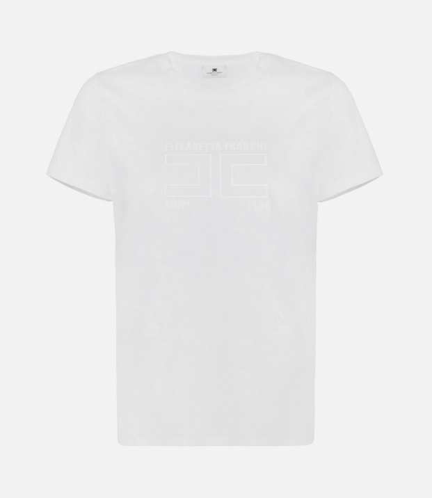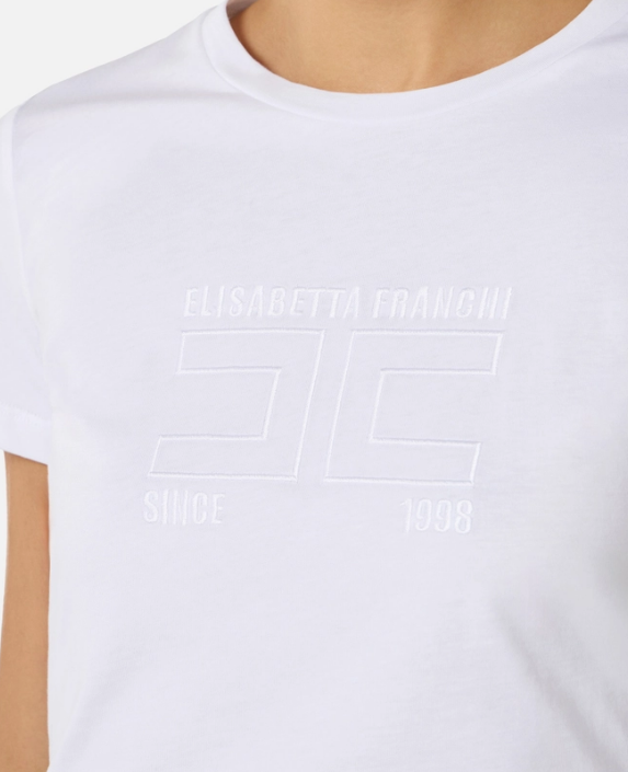 • T-SHIRT WITH EMBROIDERED LOGO ELISABETTA FRANCHI | MA71G61E2270 gesso