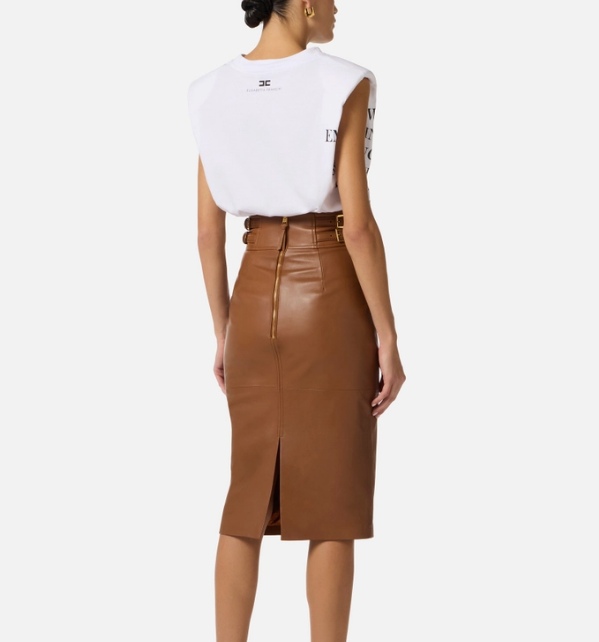 • T-SHIRT WITH LETTERING PRINT ELISABETTA FRANCHI | MA70P61E2270 gesso