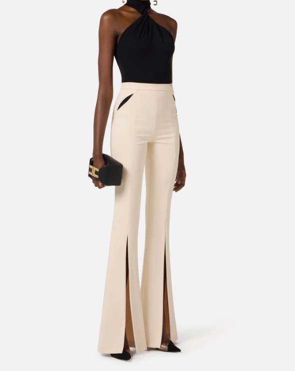 • TROUSERS WITH CUT-OUTS AND SLITS ELISABETTA FRANCHI | PA15961E2E84 burro/nero