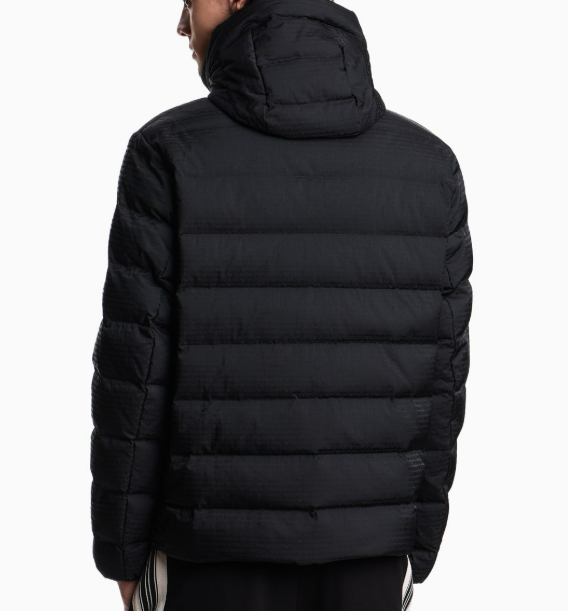 Piumino provvisto di cappuccio con coulisse e full zip di chiusura. Capo realizzato in nylon e caratterizzato dalla fitta fantasia con logo lettering a lavorazione jacquard all over.