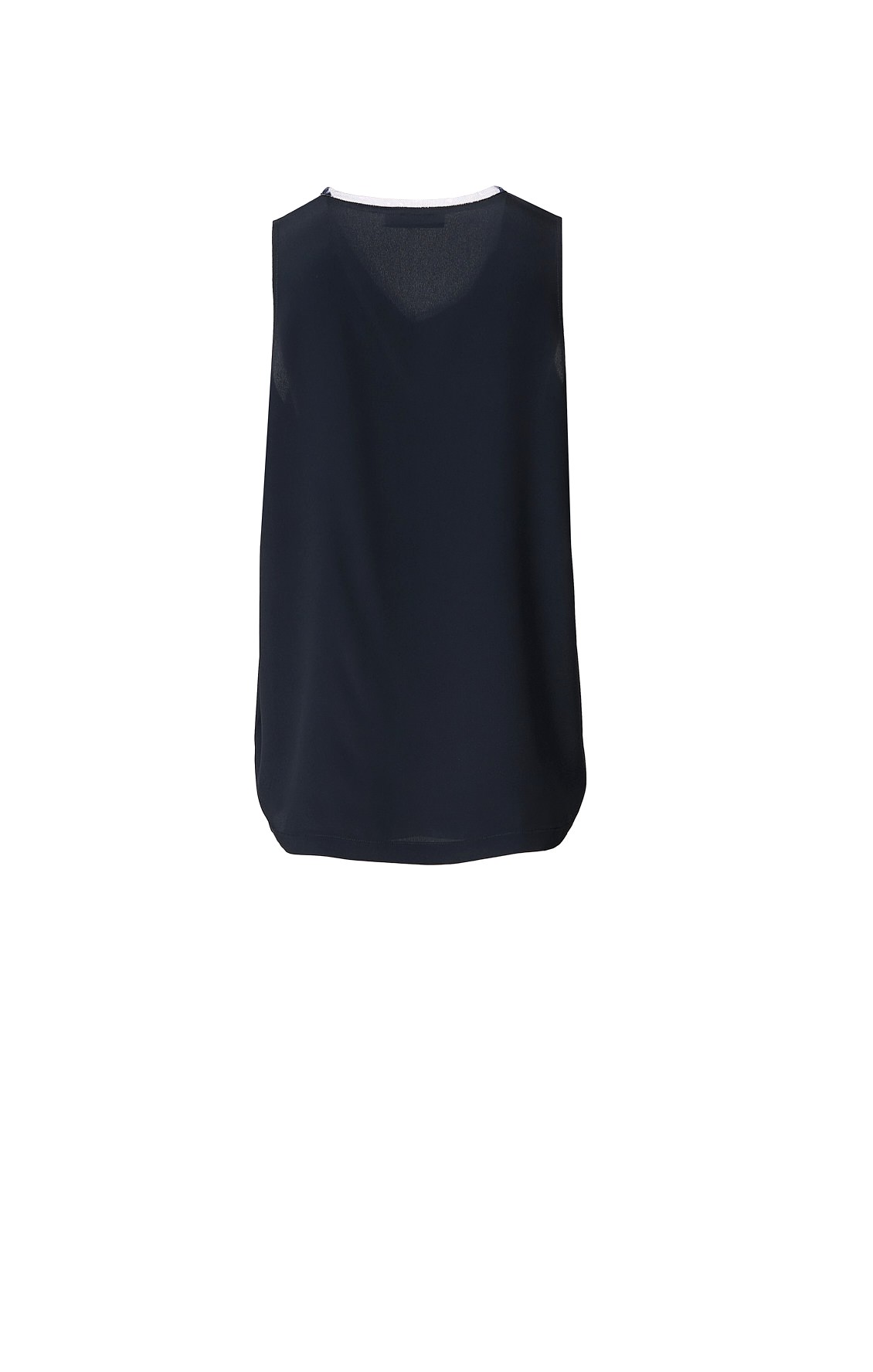 Canotta scollo a V in crepe de chine. Bordo in tulle filo diamante