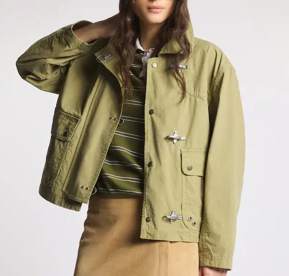 Interpretazione femminile che guarda all'heritage del brand, il 3 Ganci è caratterizzato dal colletto over, l'inconfondibile chiusura con i ganci che rimandano al mondo workwear. Questa versione sfoderata è realizzata in tela di cotone e nylon tinta in capo. Il modello è arricchito da una chiusura con automatici logati nascosti, due maxi tasche con pattina e bottoni