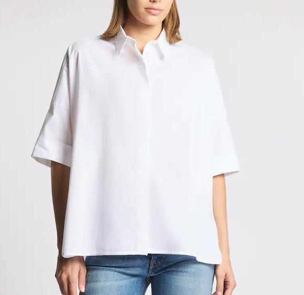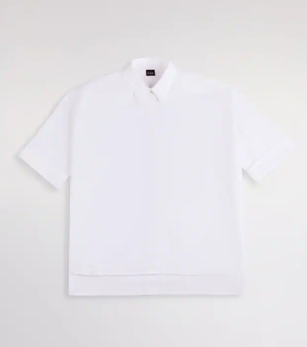 Camicia comfort fit realizzata in popeline di cotone stretch, con maniche corte e spacchetti laterali. Dotata di un'allacciatura nascosta, è arricchita dal logo Fay ricamato sul fondo.