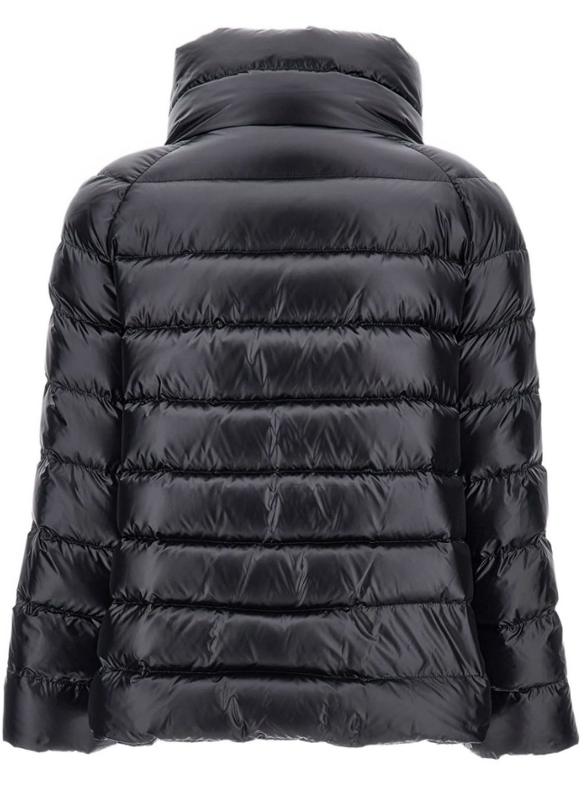 Questa versione, in nylon leggero downproof e idrorepellente, presenta un'imbottitura in piuma trapuntata a righe. Dotata di maniche raglan e una chiusura con zip, automatici invisibili e l'iconico gancio Fay all'altezza del collo, è completata da tasche a filo laterali chiuse con zip.