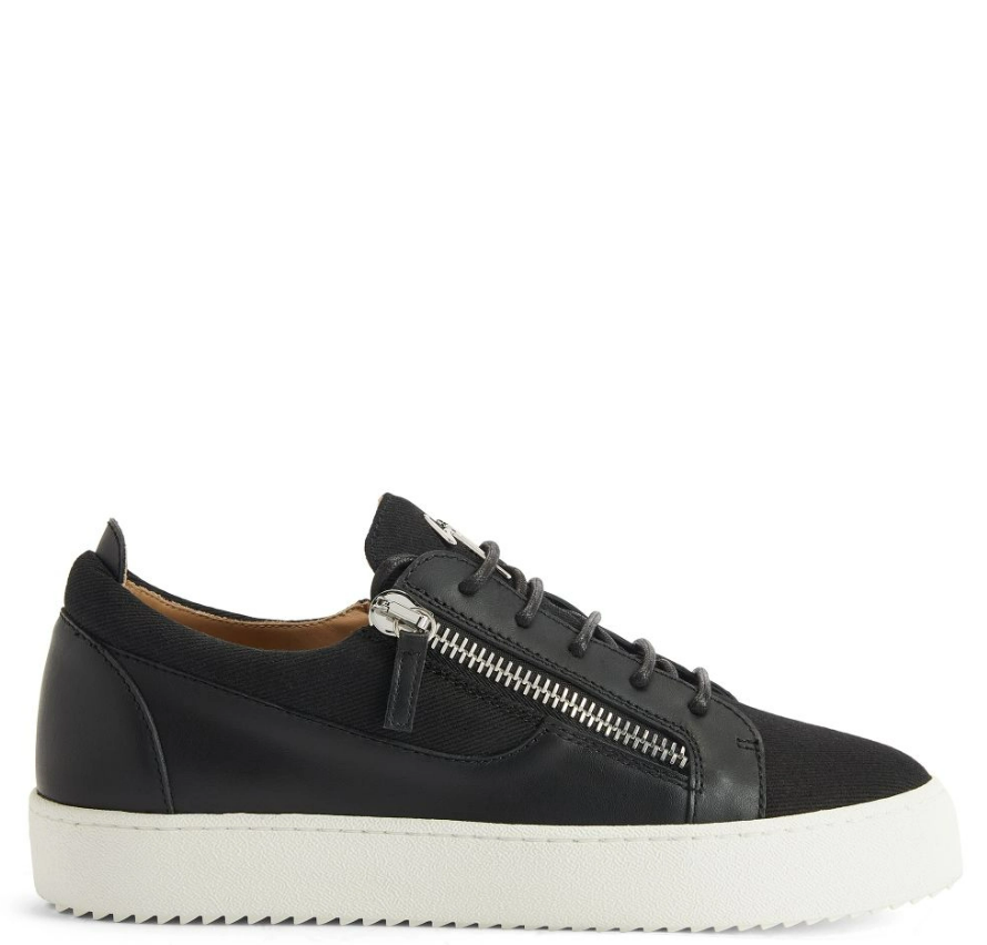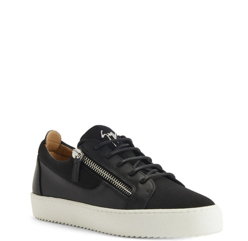 Sneaker low-top bimateriale in tessuto e pelle, caratterizzata dal dettaglio 'Signature' in metallo color palladio sulla linguetta e dalle zip laterali metalliche, suola in gomma.